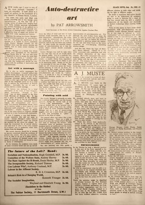 Arrowsmith, Pat. “Auto-Destructive Art”. Peace News, 22 July 1960, 11.