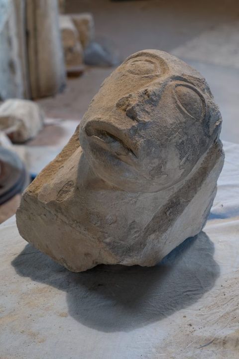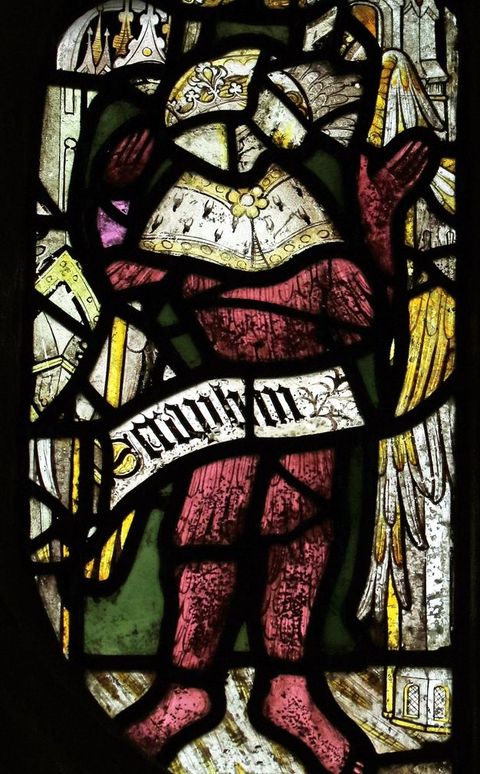 Glass was loaned to Metzger by individual churches, Stratton Strawless, Norfolk and Baningham Church, Norfolk (incorrectly listed as Bannington in the original catalogue), and Norwich lead glaziers G. King & Son from a variety of locations (figs. 39, 40, 41, 42, 43, 44, and 45). The family firm of G. King & Son has not existed for some years now, but the son of its co-founder, Michael King, a medieval glass specialist, explained that Metzger’s selection almost certainly would have consisted mostly of glass under restoration in the workshop at that time and would have been returned to the buildings they came from on completion of the work (which sometimes took a number of years). While Michael was unable to identify with certainty all of the pieces based on Metzger’s description, he suspected that some were part of the collection his uncle was assembling in order to make the Erpingham window in Norwich Cathedral, completed in the early 1960s (fig. 46). While glass was offered by Reverend Christopher Engelsen of Stratton Strawless, the practicalities of employing a glazier to remove the fragments was beyond our means.76 Likewise, the practicalities of borrowing the nine grotesque corbels Metzger had been loaned from Norwich Cathedral proved impossible (figs. 47, 48, 49, 50, 51, and 52). However, viewing the objects, the librarian and curator at the cathedral noted that they were not subject to damage at the time of the Reformation as Metzger had supposed.