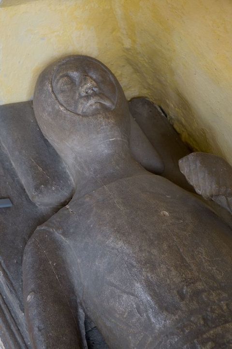 Our intention to exactly restage Treasures from East Anglian Churches at LOWER.GREEN, Norwich to think through preservation and destruction in a space earmarked for demolition and a contested redevelopment was cooled when we began tracing the objects. Formal museums, including Moyse’s Hall of Bury St Edmunds, Spalding Gentlemen’s Society, and Wisbech and Fenland Museum, accounted for six objects—wood sculpture, stone carving, and glass—which could not be traced, based on descriptions or would not be traced due to lack of resources. While the fourteenth-century Effigy of a Knight, of wood, painted in stone colour, lent by Banham Church, Norfolk, remains in place; two years before our enquiries it had been locked into its bed with reinforced iron clips (figs. 37 and 38). If this had not been case, Canon Steven Wright told us, “Sir Bardolf”, as it is affectionately known in the parish, would have been loaned. Canon Wright had no knowledge of its 1957 trip to King’s Lynn.